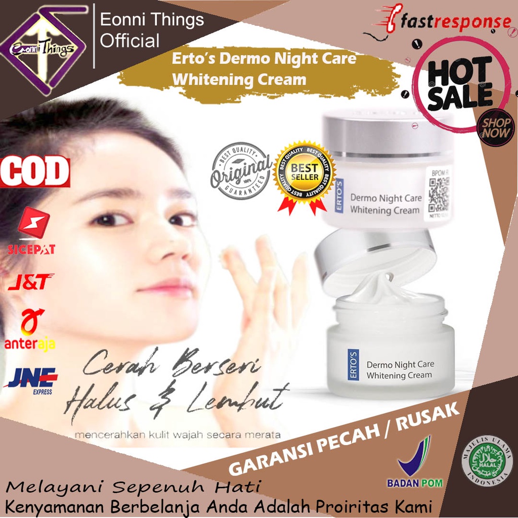 - Krim Pemutih Pencerah Whitening Wajah Muka Glowing Skincare Skin Care Scincare Skincer Perawatan Penghilang Noda Hitam Wajah Anti Kusam Berminyak Pelembab Dermo Night Care Whitening Brightening Cream Aman Ampuh Terbaik Yang Bagus Ori Original Bpom ESR04